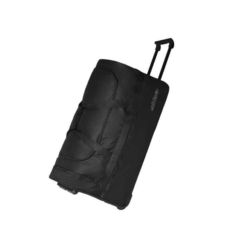 Corps en Polyester 600D, mécanisme à roulettes intégré, poignée escamotable, poche latérale profonde, poche zipée, logos sérigraphiés avec contour reflective.